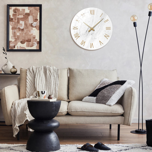 Horloge Murale en Verre - Design Marbre Blanc et Chiffres Romains