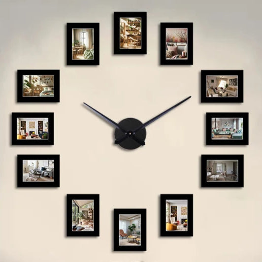 Horloge Murale Cadre Photo Noir - Design Créatif et Personnalisable