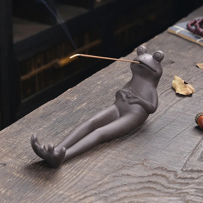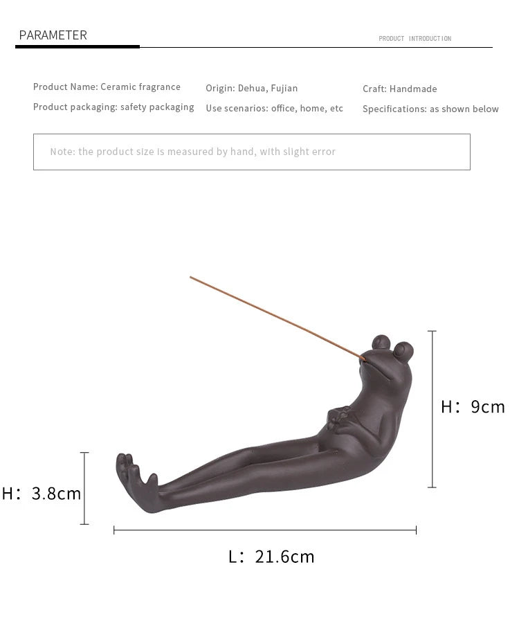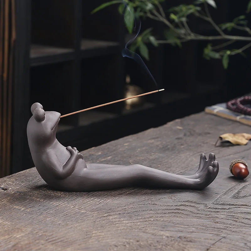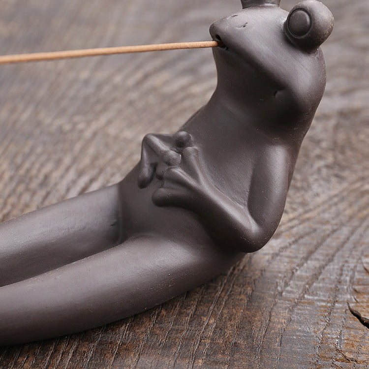 Fabriqué à la main en argile violette de haute qualité, ce porte encens est une véritable œuvre d'art. Sa forme de grenouille ajoute une dimension ludique et charmante à n'importe quel espace, tout en permettant une diffusion apaisante des arômes d'encens.