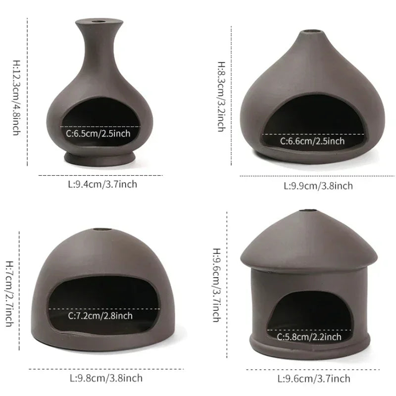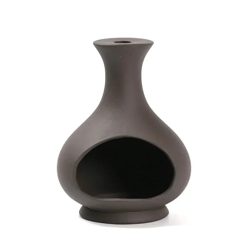 Fabriqué en argile violette de qualité, ce porte encens est une pièce unique faite à la main. Son design simple et élégant s'intègre parfaitement dans différents types de décors, tout en apportant une touche apaisante et raffinée à votre intérieur. Il est idéal pour vos moments de méditation ou pour offrir en cadeau à un proche.